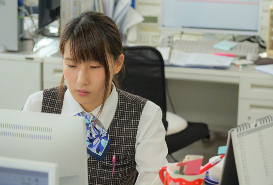 入社間もない頃は業務量の多さに取りまとめが大変と感じたのですが、事務仕事の軽減のために当社独自のシステムを導入して頂いたり、先輩や上司のサポートもありましたので、今では自信を持って対応できるようになりました。